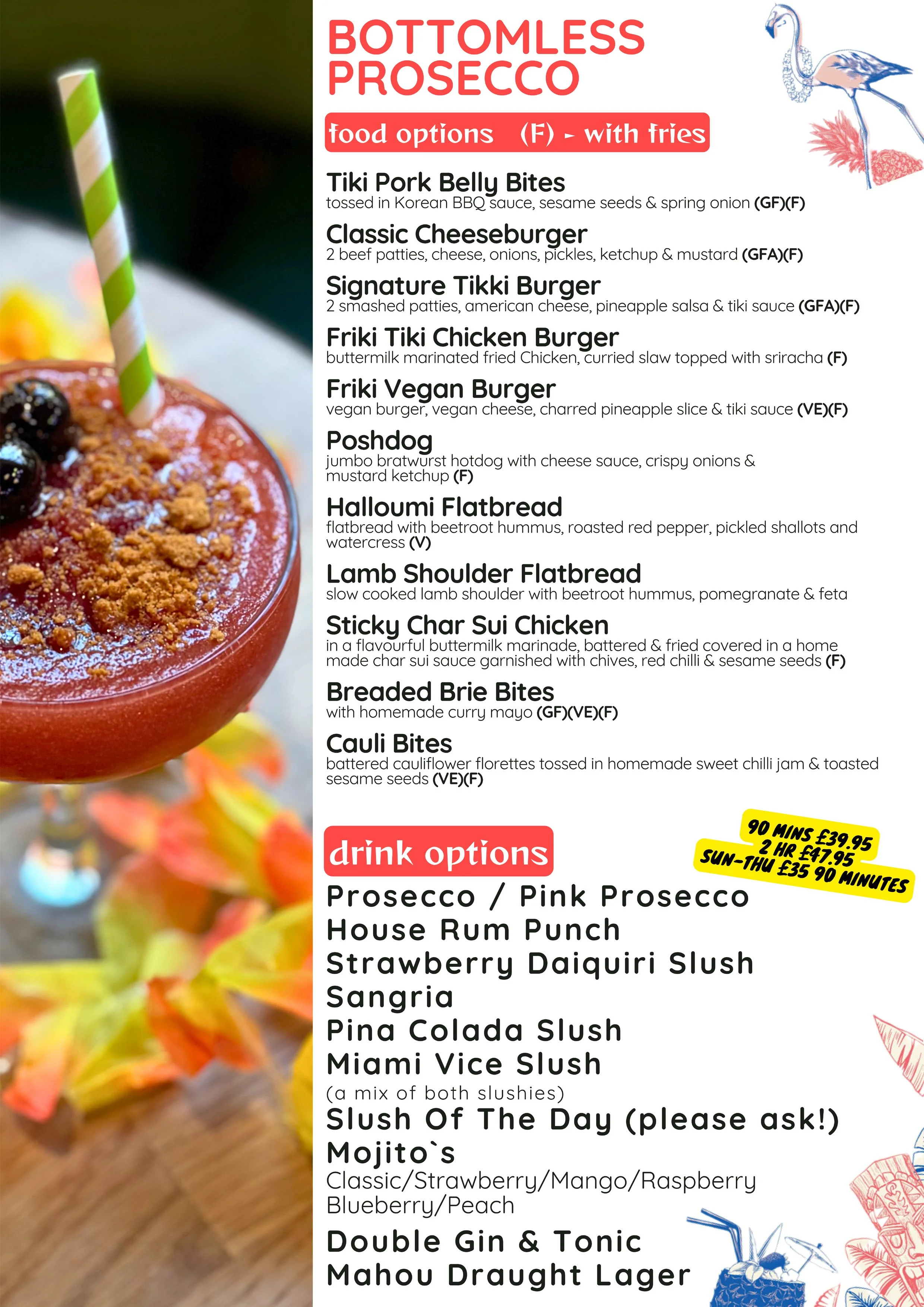 Our Bottomless Prosecco Brunch & Supper is the ultimate way to kick back, fill up, and keep those drinks flowing. Whether it’s a lazy afternoon treat or a boozy evening catch-up, you bring the crew — we’ll bring the bubbles.